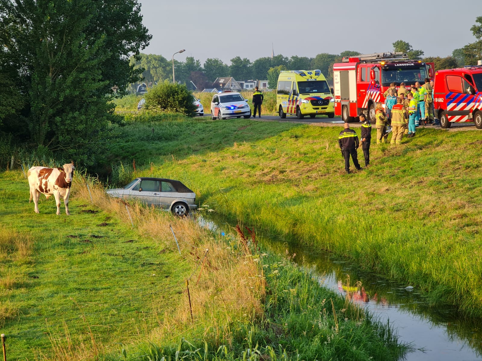 De hulpdiensten werden iets na 7 uur opgeroepen. Ter plekke bleek het te gaan om auto die in een slootje naast het kanaal in het water lag. In de auto werd zelf niemand aangetroffen, maar in de sloot eromheen ook niet. De opgeroepen traumahelikopter is daarom ook gecanceld. De ramen van de auto waren beslagen, wat doet vermoeden dat de auto al wat langer in de sloot ligt. Uit de sporen is af te lijden dat de auto de bocht te ruim heeft gepakt en hierna te veel teruggestuurd, waarna deze ter water kwam.