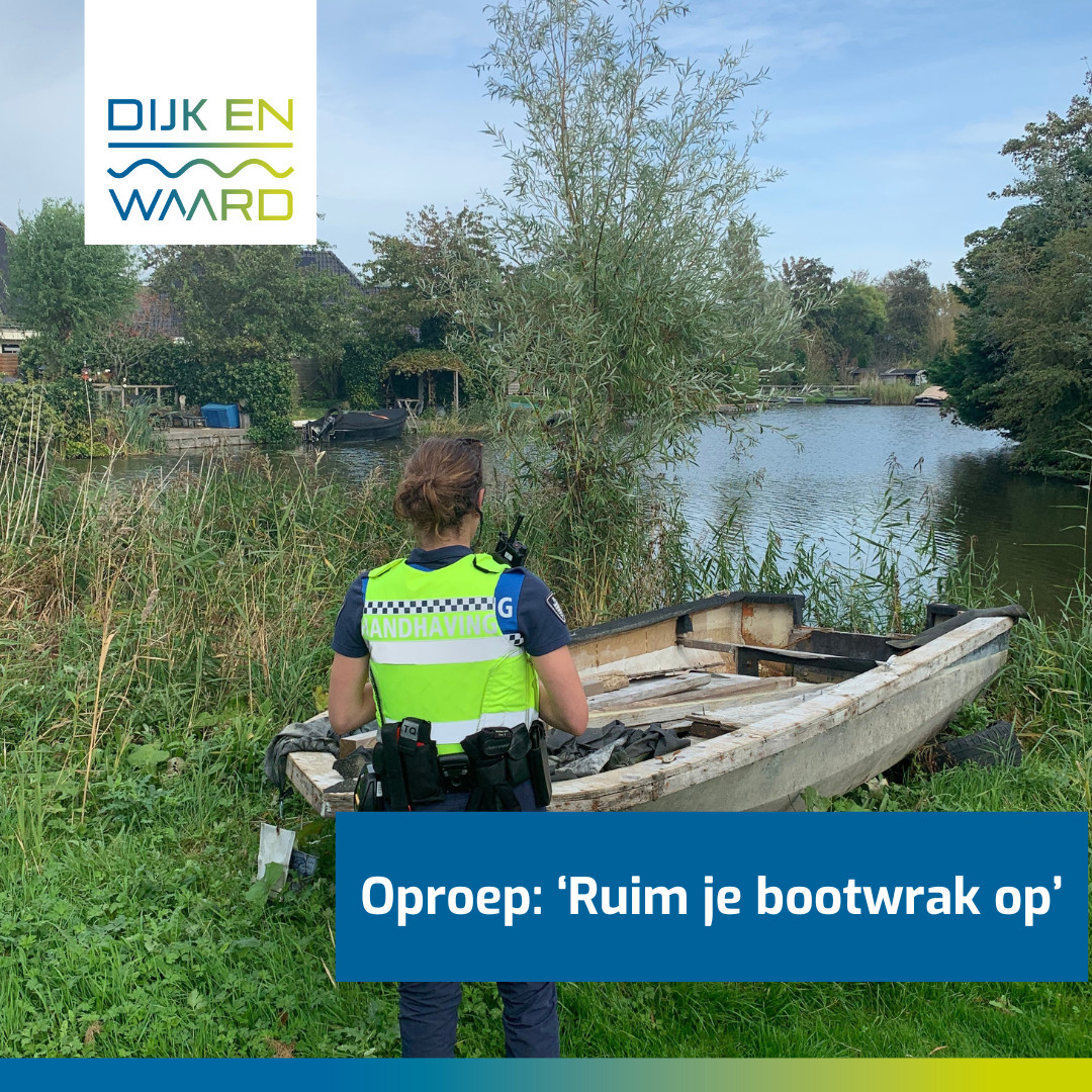 Dijk en Waard is een waterrijke gemeente en dat betekent dat veel mensen ook een boot hebben. Dat biedt veel plezier voor verblijf op het water, maar dat betekent ook dat er veel boten in slechte staat in het water en langs de kant liggen. Iedereen wil een veilige, schone leefomgeving en dus ook gezond water, daarom gaat handhaving de bootwrakken ‘aanplakken’. Er zijn naar schatting 30 tot 50 bootwrakken in Dijk en Waard.