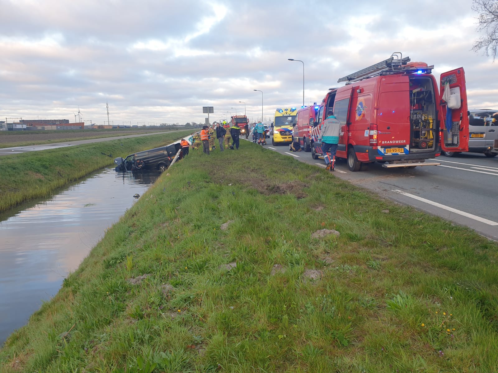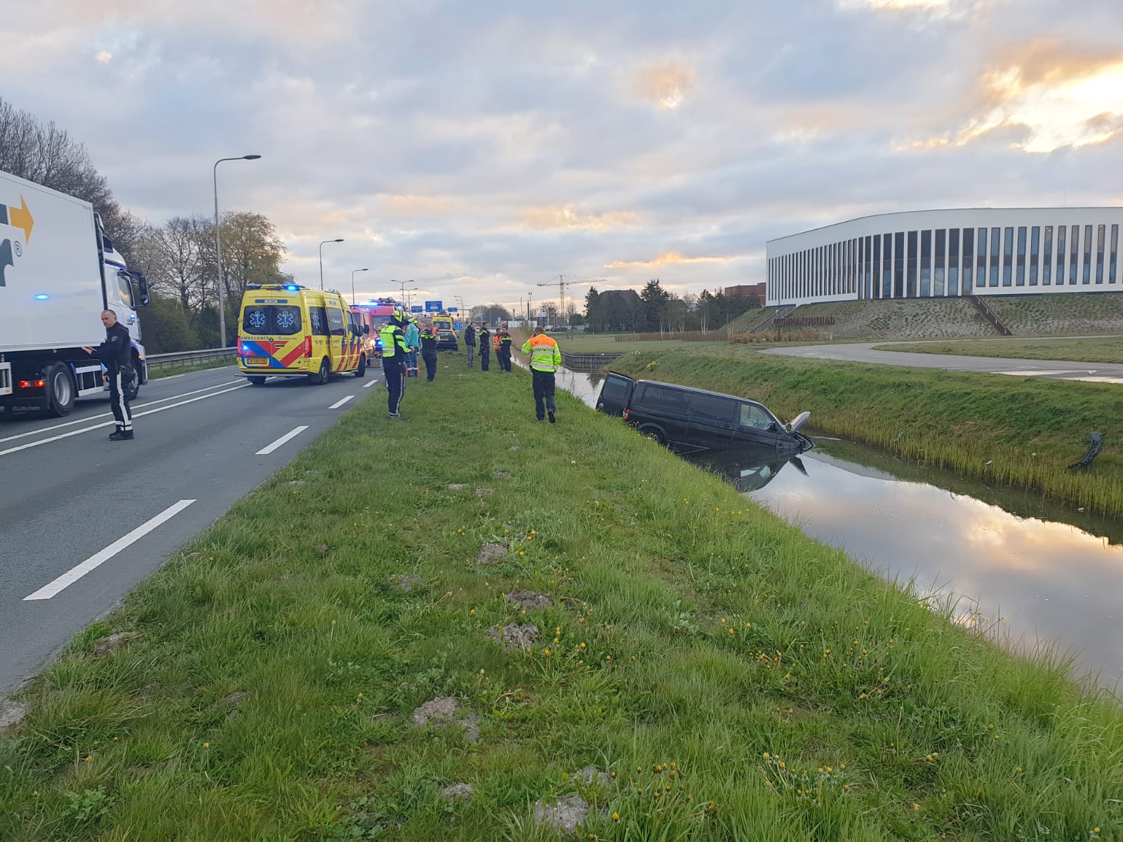 N242, rond kwart voor zeven heeft er een eenzijdig ongeval plaatsgevonden op de N242 terhoogte van het oogcentrum. Een VW busje is door onbekende oorzaak de weg over geschoten en te water geraakt. De bestuurder is door duikers van de brandweer uit zijn busje gehaald. De man was nog wel aanspreekbaar en is naar het ziekenhuis overgebracht met onbekend letsel.