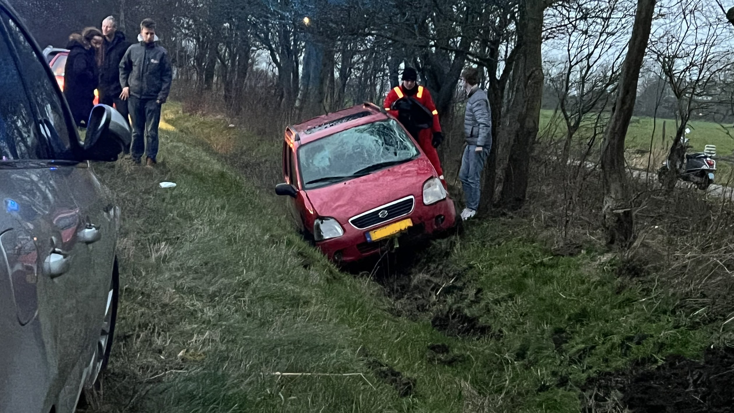 Oudkarspel: rond 6 uur vanavond heeft er op de Westelijkerandweg in Oudkarspel een ongeval plaatsgevonden. De bestuurder van de rode auto werd door een harde wind-vlaag van de weggeblazen. De auto is hierbij hard in een greppel beland, hierbij is de man gewond geraakt. Ambulancepersoneel en omstanders hebben de man bijgestaan. De man is door de klap van het ongeluk hard met zijn hoofd tegen het raam gekomen.