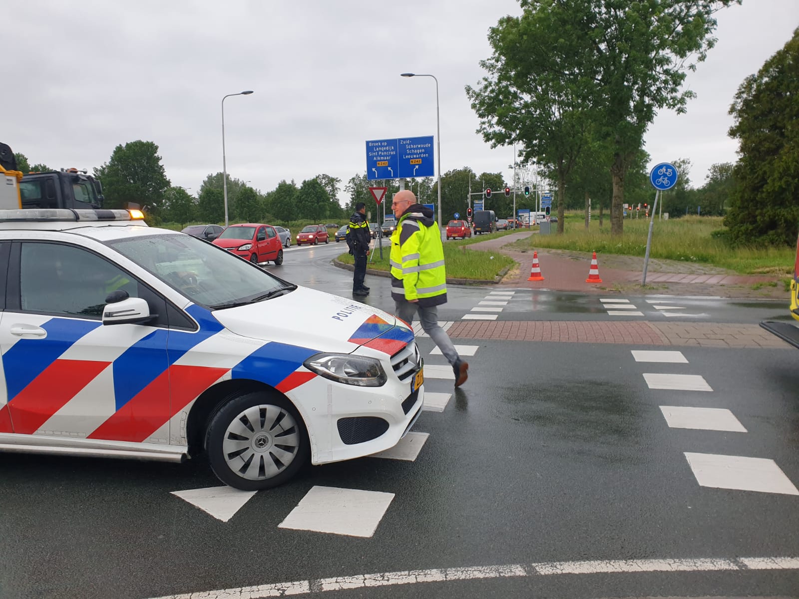 Op de splitsing Kamerling Onnesweg met de Galileistraat heeft vanochtend een ongeval plaats gevonden. De zwarte auto reed richting de N242 t waar de rode net vandaan kwam. De rode auto wilde nog net voor de stoet auto’s langs maar botste vol in de zwarte auto. Door de slinger die de auto maakte raakte de bestuurster gewond en is met de ambulance naar het ziekenhuis gebracht. Doordat de oorzaak duidelijk was hoefde de VOA niet te komen.