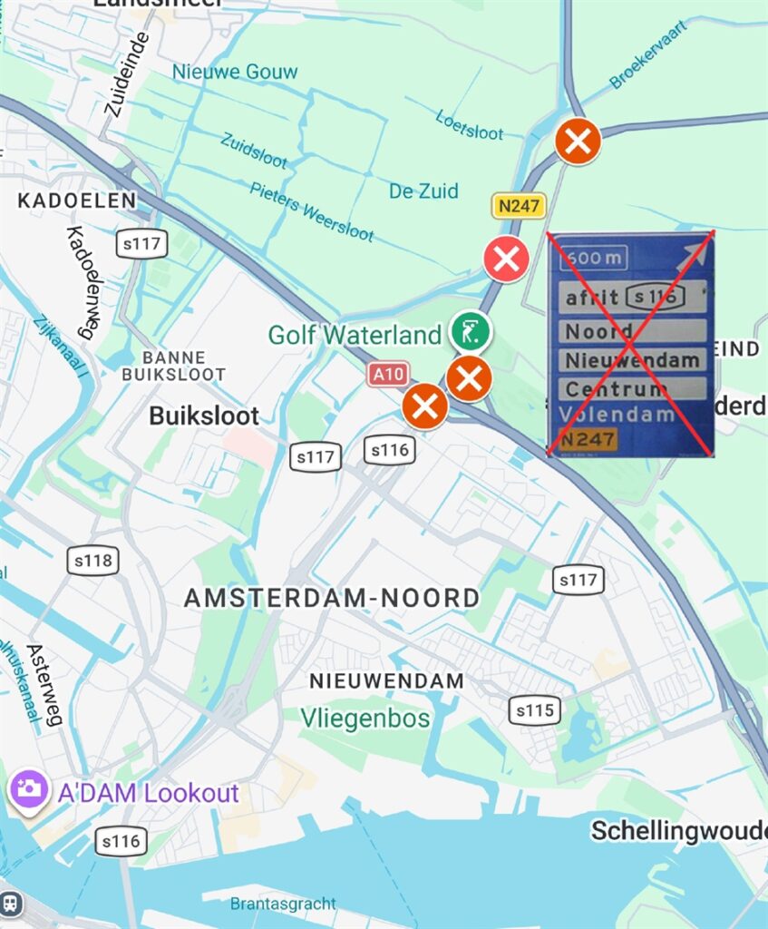 Vanaf zondag 12 april 20.00 uur zijn de af- en opritten van de A10 Noord afgesloten in de richtingen Amsterdam-Noord/Amsterdam-Centrum en Volendam (de S116). De afsluiting duurt tot en met maandag 27 april 5.00 uur. Er is een omleidingsroute. Houd rekening met een forse extra reistijd.